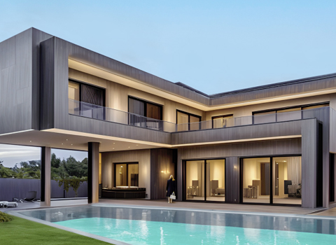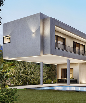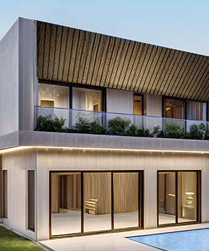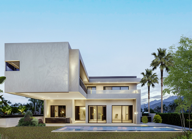La villa présente une architecture raffinée et contemporaine, avec des lignes épurées et des finitions de haute qualité. Les vastes espaces intérieurs offrent une atmosphère lumineuse et aérée, avec de grandes baies vitrées.